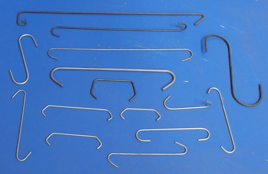 We offer Design, 3D Wire Bending, Fabrication, and Coating services for all types of commercial wire products, including mining hooks, landscaping pegs, refrigeration shelving, retail display stands, shelf dividers, stands, and many others.